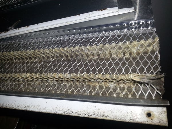 If you’re unfamiliar with galvanic corrosion (just like most people), then it’s easy to see this issue and dismiss it as a problem with micromesh gutter guards. This gutter guard also has a lot of algae, which doesn’t help.
