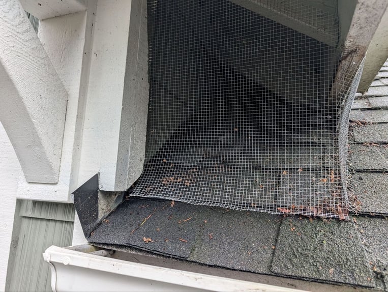 In this image, the mesh is still intact. But if the mesh is forgotten or somehow gets damaged, then it will no longer keep out small pests like mice, birds, or bats.