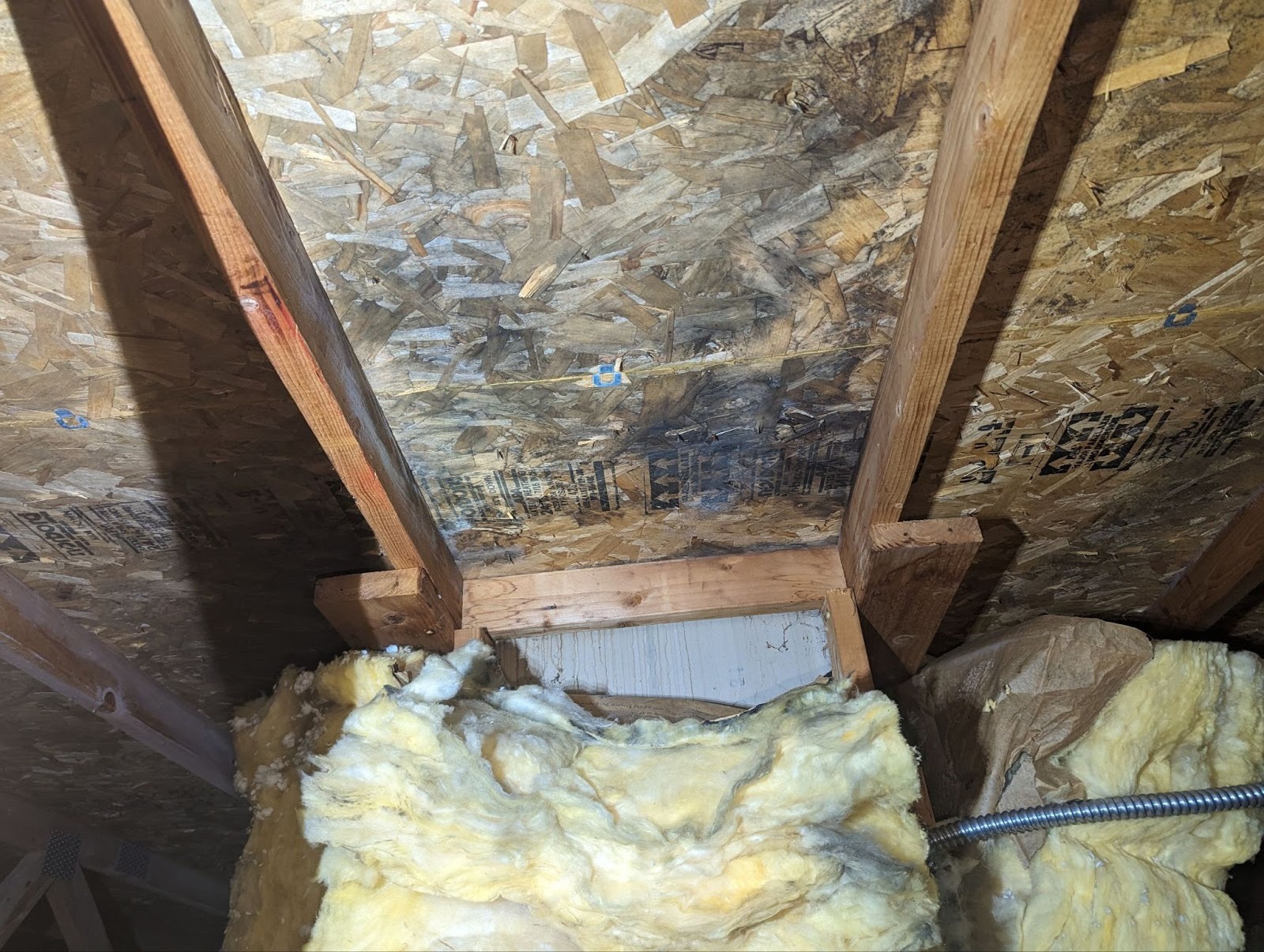 The solar panels on the roof blocked the sun from hitting the roof and warming it up, which helped to keep the air rising from the house into the attic dry. Without that, the moisture from the air doesn’t go anywhere. Throw in the poor ventilation, and you’ve got a recipe for disaster (aka mold).