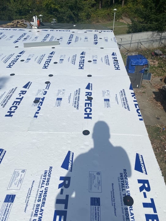 3. Roof with regular ventilation and polyiso → Instead of filling in the roof with insulation, one option is to keep the traditional ventilation and add extra insulation. This means adding a layer of foam boards. We have done this before and installed the metal directly on top of insulation, using plastic caps to keep the metal from scratching as it moves. This is what the plastic caps look like: