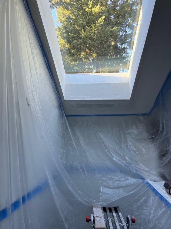 - Prime and paint the skylight well: Now that the texture is dry, your roofer can prime the skylight well and paint it. They’ll need to wait long enough for the