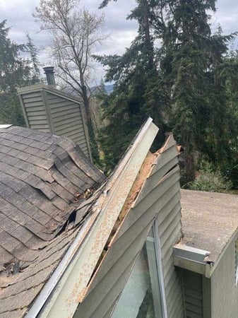 In Seattle, the fall and winter months can sometimes bring in powerful wind storms that rip shingles off the roof and blow branches into your roof, causing damage. They can also cause trees to fall over and damage your roof.