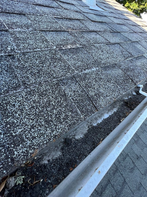 Some parts of the roof were fine, while others had lots of granule loss and delamination. You couldn’t tell there was a problem while looking at the roof from far away, but it was very obvious up close.