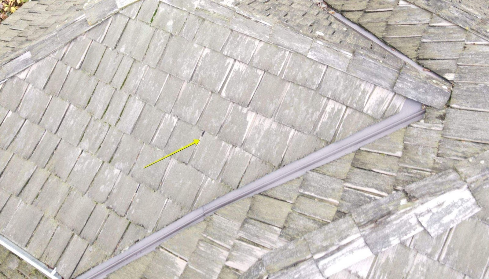 Here’s an example of a hole in a cedar shake roof: