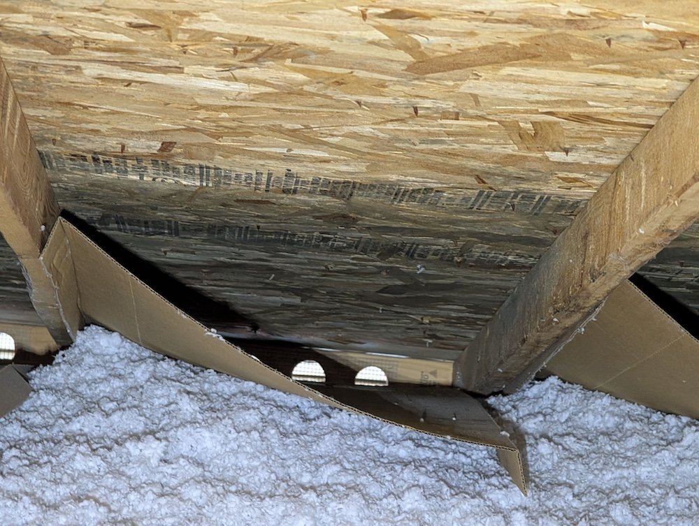 - Moisture entering through soffits or vents