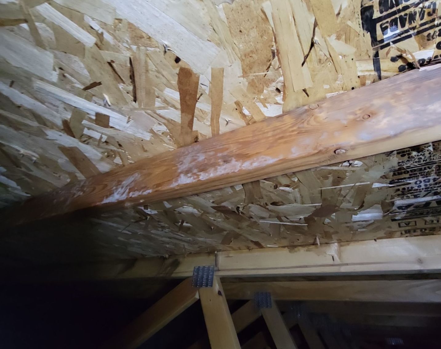 You don't see anything on the rafters, the framing, or trusses. There’s only a little bit of mildew at the edge of the roof.