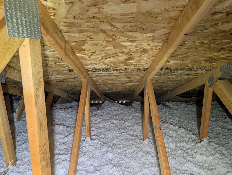 - Leaky super anchors: They're cut right through the sheathing and they don't, they always seem to leak. From the attic, you can see that they leak.