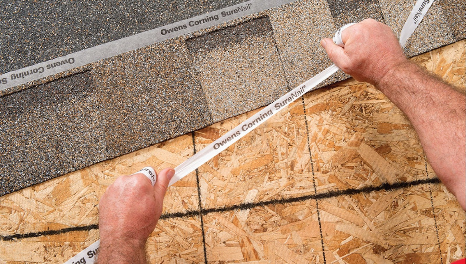 Owens Corning Duration series shingles are all made with a SureNail strip, which is the area along the shingle where the roofers place the nails during installation.