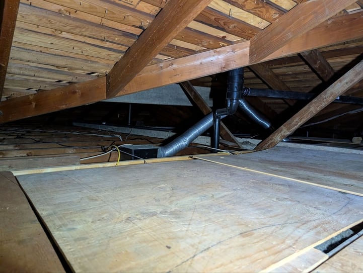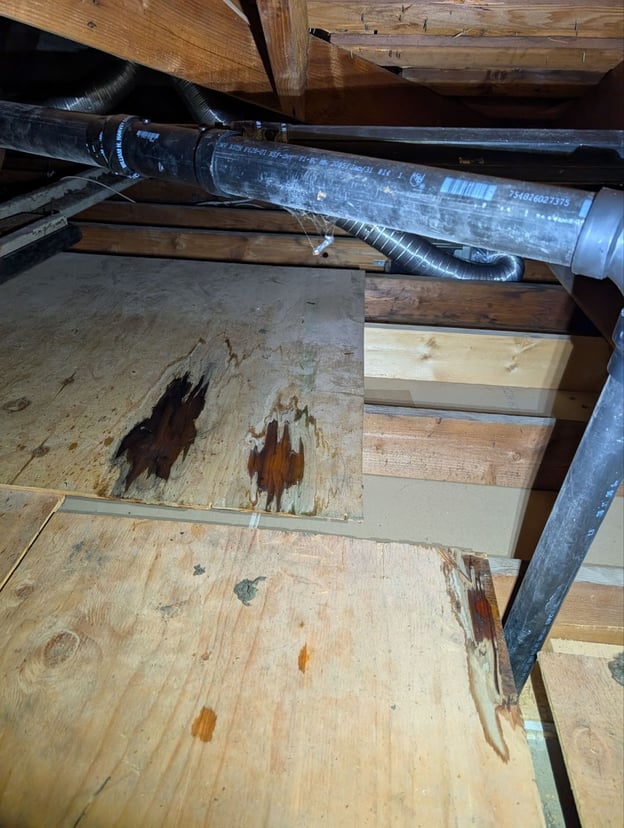 - Plumbing pipes leaking in attic: Somebody had done a crappy bathroom remodel and changed some of the plumbing in the attic, but the pipes went the wrong direction, and so it was pooling inside the pipes and leaking into the attic. Gross!