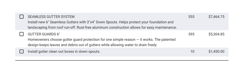 - Vague descriptions: Another thing to watch out for in the contract is weird or vague descriptions of the scope of work. You should be able to clearly tell what the roofer is going to do. Here’s an example of a strange and unhelpful description in a real contract about gutter guards (the middle one):