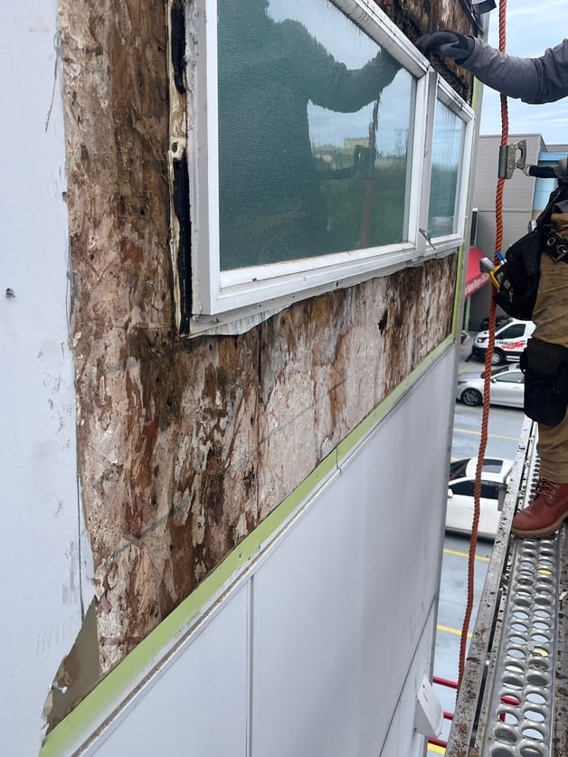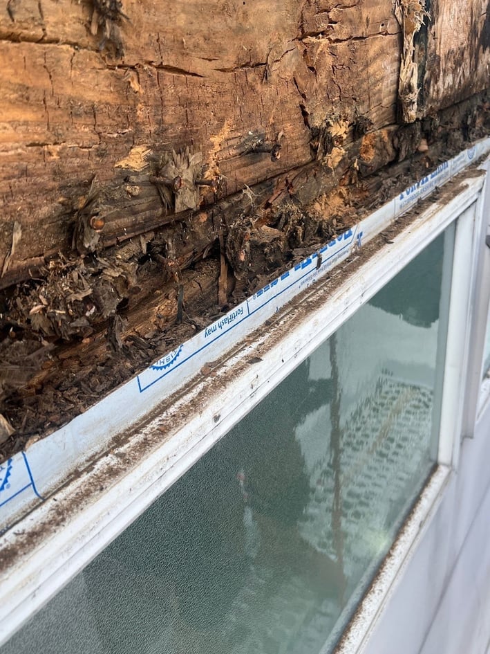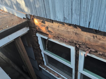 Again, this customer hired a contractor who skipped out on z flashing and just caulked around the windows. After 10 years of leaking, this is what we found underneath the siding.