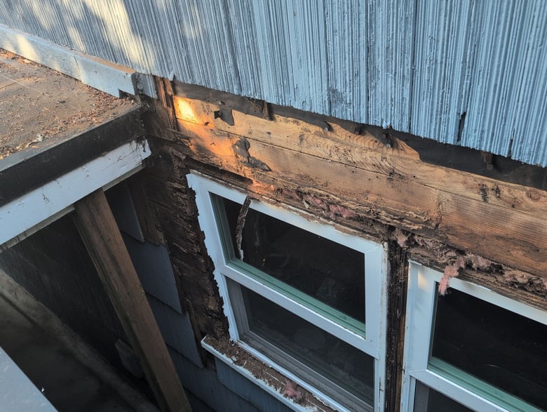 We’ve seen this happen on countless occasions. Recently, we had a customer who had windows with no z flashing that we sealed in with caulk. After years of leaking, here’s what we found when we pulled off the siding: