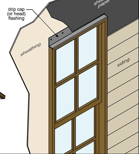 A key step here is making sure that the siding is installed slightly above the top of the window or door, not right on top of it. There should be a little gap because that is where the water collected by the z flashing will drain out. And it should *not* be caulked.