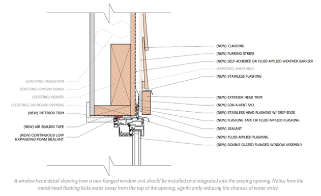 That way, even if water gets behind the siding and drips down, your windows and doors will be protected because the water can drain back out, and never hits your wood subwall.