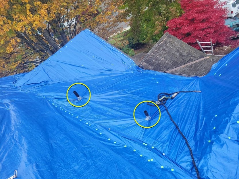What is the proper way to install a tarp over a roof leak in Seattle?