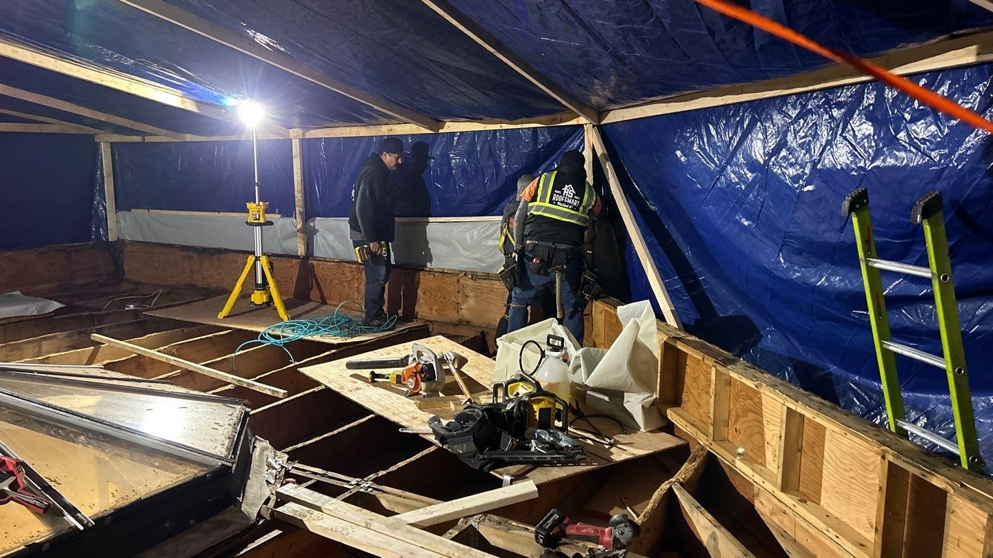 Instead, you basically have to build a tent of tarps over the entire roof to keep water out.